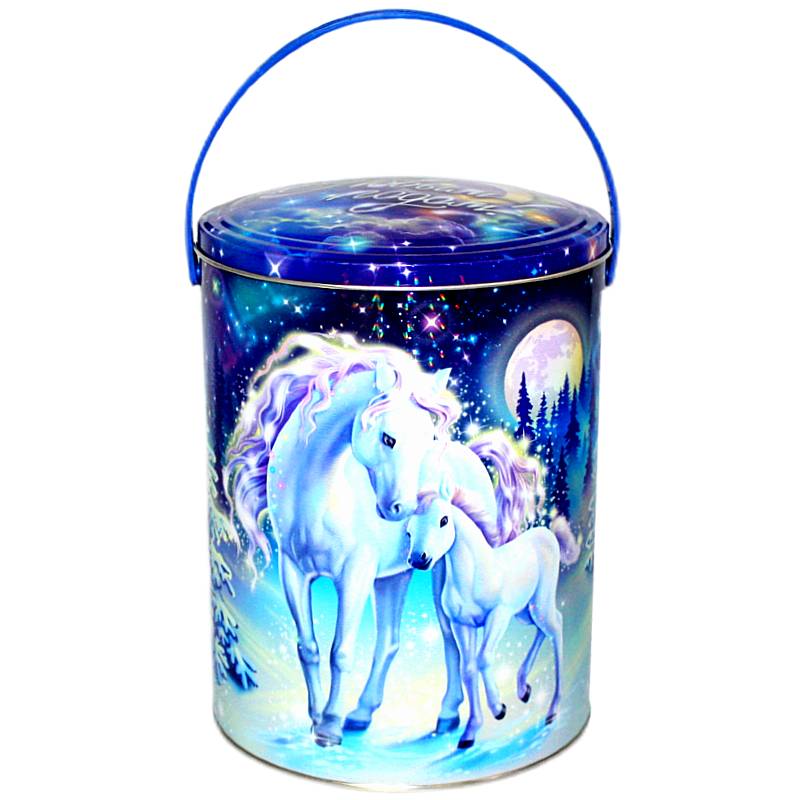 Детский новогодний подарок в жестяной упаковке весом 1200 грамм